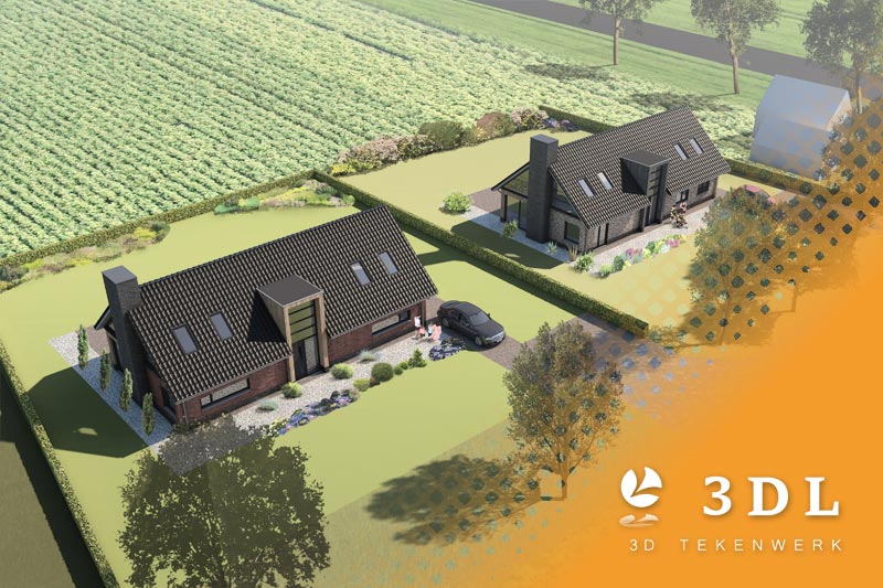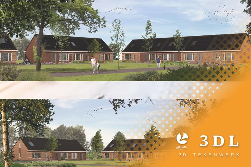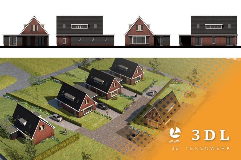 Diverse artist impression van 3DL Tekenwerk van woningen en andere gebouwen